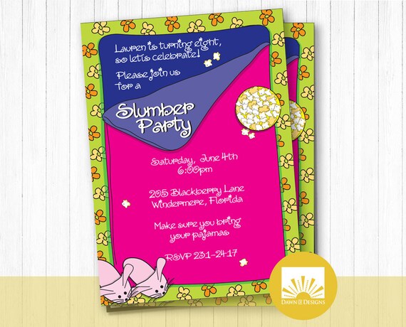 Slumber Party Invitation Pink Sleepover Birthday Invite Etsy