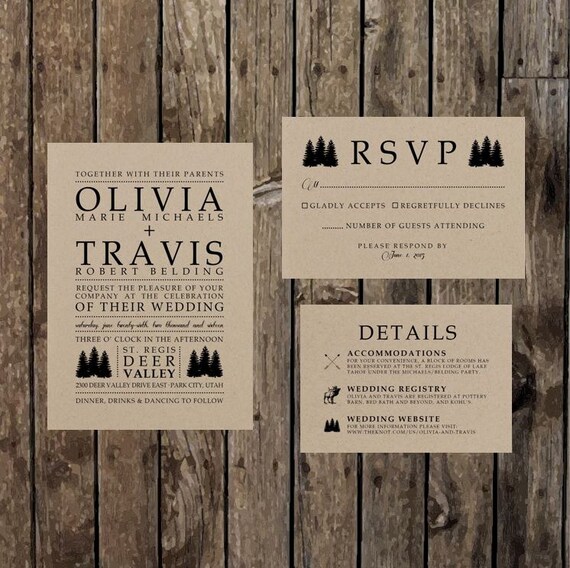 Diy Printable Woodland Wedding Invitation Set On Kraft Paper Etsy